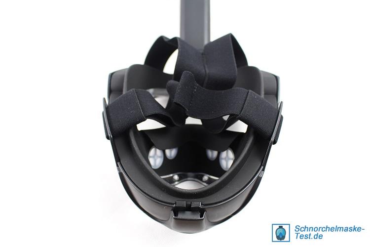 Hinsichtlich des Tragekomforts konnte die Vollgesichtsmaske ebenfalls punkten. Über Bänder auf der Rückseite lässt sich regulieren wie eng die Maske am Gesicht anliegt. Dadurch lässt sich einstellen, dass sie weder zu stark auf die Haut drückt, noch zu locker sind und Wasser eindringen kann.