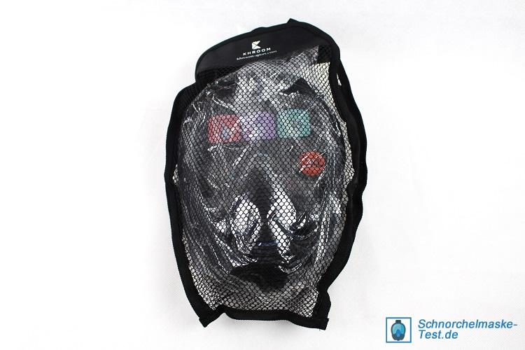 Die Khroom Seaview BC als Modell vom Jahr 2025 wird in einer Tragetasche geliefert. Das ist typisch für die meisten Schnorchelmasken