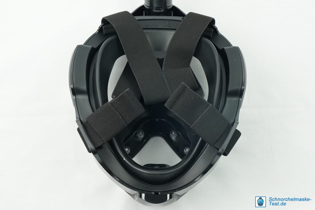Über die Träger auf der Rückseite lässt sich die Schnorchelmaske ganz einfach auf verschiedene Kopfformen anpassen. Dadurch lässt sich in jedem Fall sicherstellen, dass die Maske so am Gesicht anliegt, dass sie ordentlich abdichtet, aber gleichzeitig nicht zu stark auf den Kopf drückt.