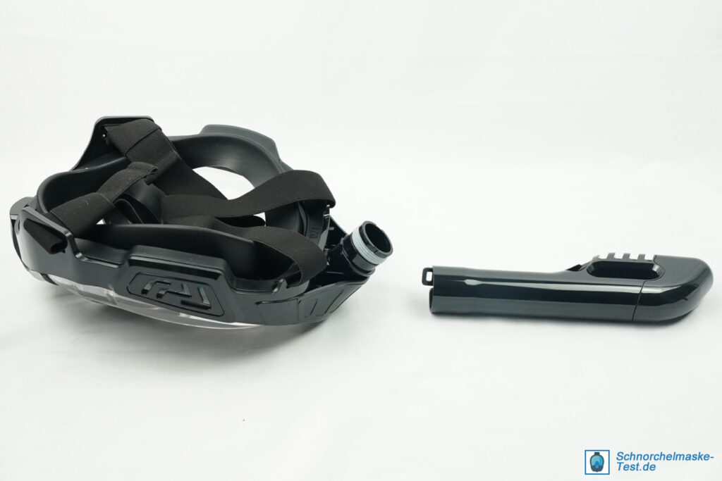 Auf dem ersten Blick sieht der Schnorchel der Seaview Y doch recht besonders aus. Dennoch handelt es sich hier um einen „normalen“ Trockenschnorchel. Das heißt: Er besitzt einen Schwimmkörper im Inneren. Gelangt der unter Wasser, wird der Schnorchel verschlossen. Dadurch soll kein Wasser in das Innere gelangen.