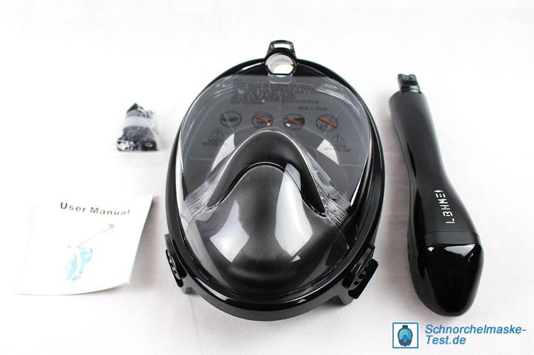 Im Beutel waren bei neben Maske und Schnorchel eine Bedienungsanleitung sowie eine Halterung für Actiom-Cams enthalten.