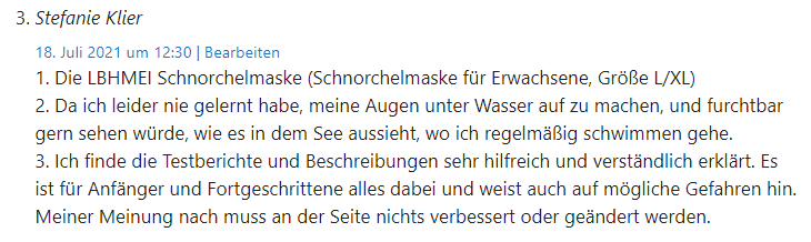 - Was würdest du an dieser Website verbessern? / Welche Informationen wünscht du dir auf schnorchelmaske-test.de?